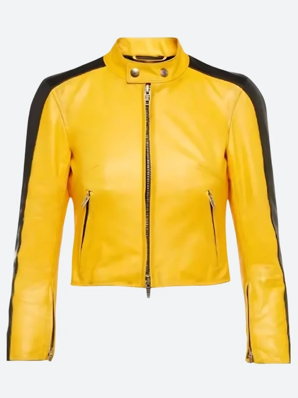 Elevate your streetwear game with the Katy Perry Yellow Biker Leather Jacket, a bold statement piece that embodies the essence of celebrity fashion. Crafted from premium leather, this jacket features a soft inner lining for ultimate comfort without compromising on style. The striking yellow hue commands attention, while the erect collar and zipper cuffs add an edgy flair perfect for any pop culture enthusiast.
